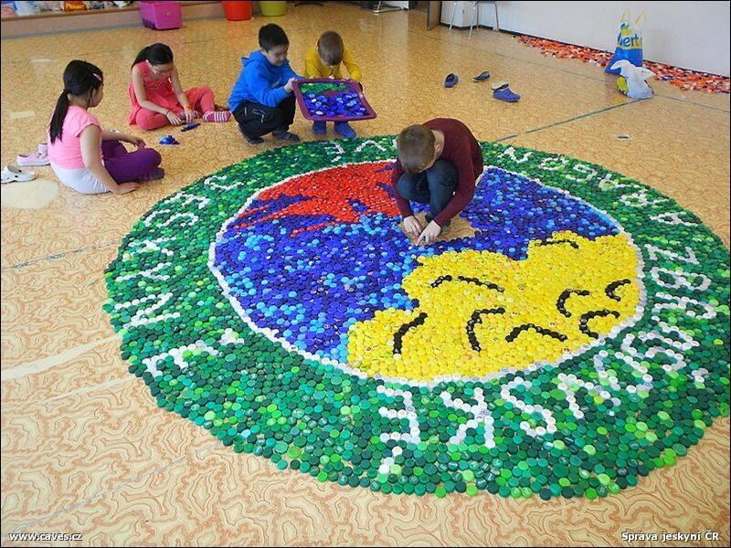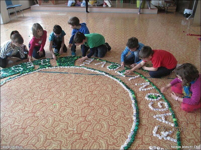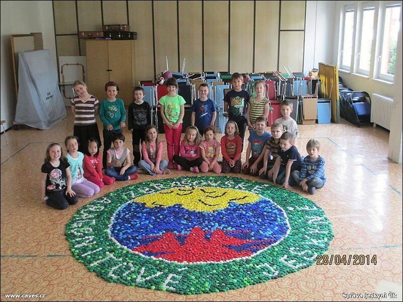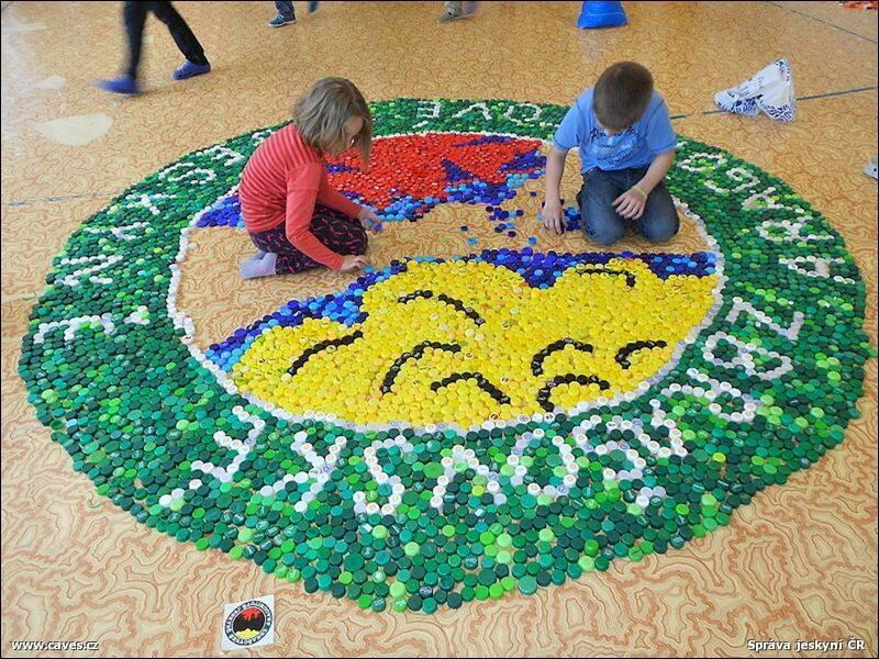 Obří logo Zbrašovských jeskyní vytvořili z vršků PET lahví