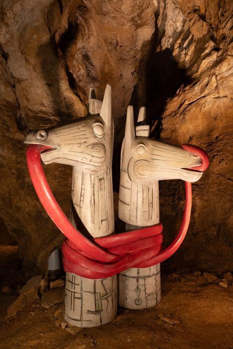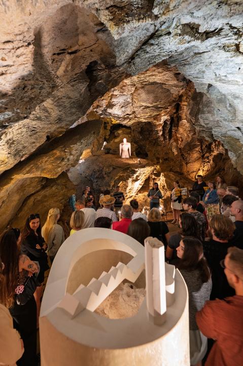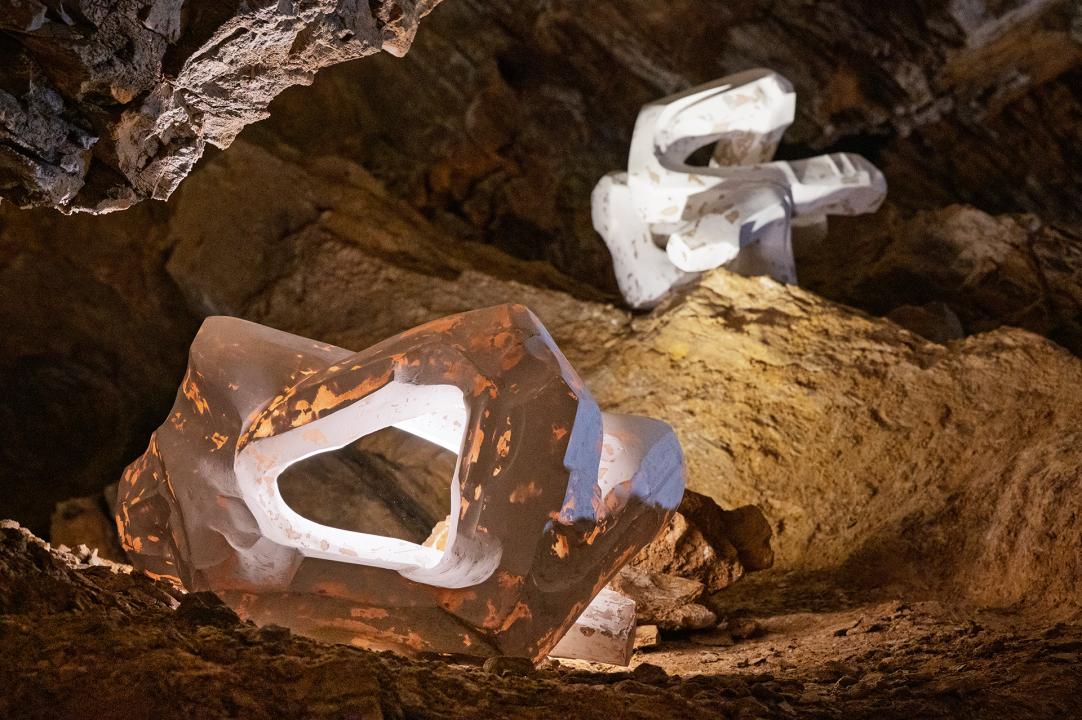 Sochařská výstava Postmineral ve Zbrašovských jeskyních, léto 2025