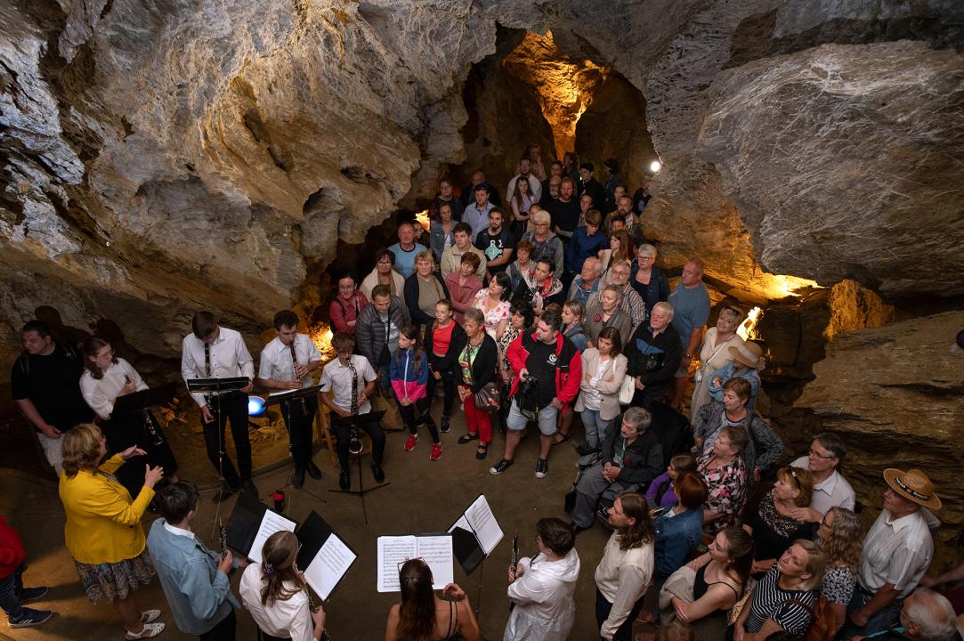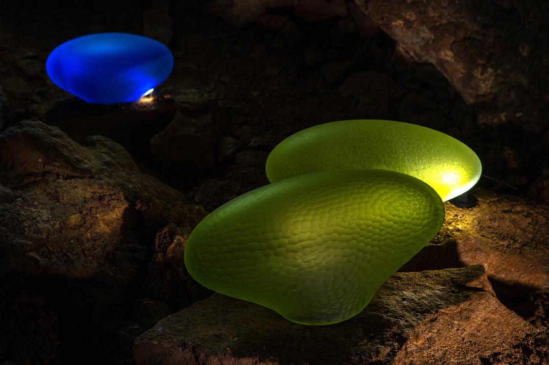 Výstava Ondřej Strnadel – Světlo sklem, Zbrašovské jeskyně, léto 2023