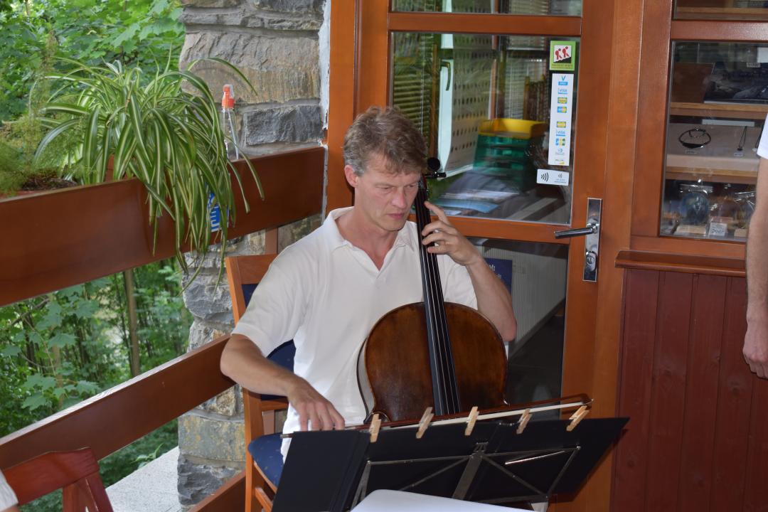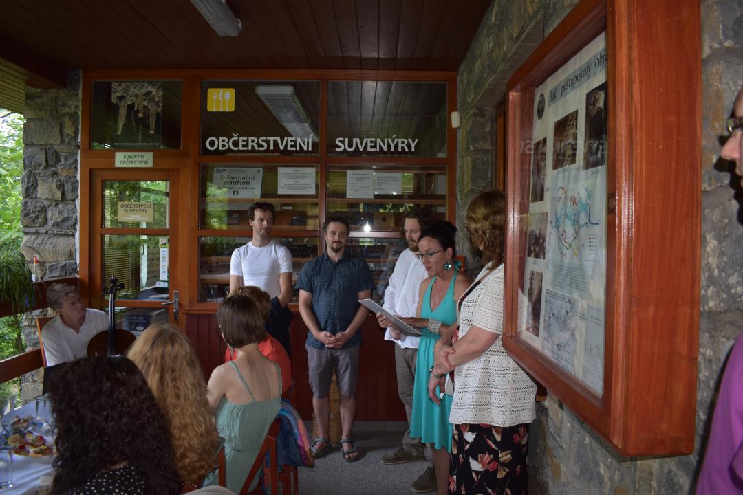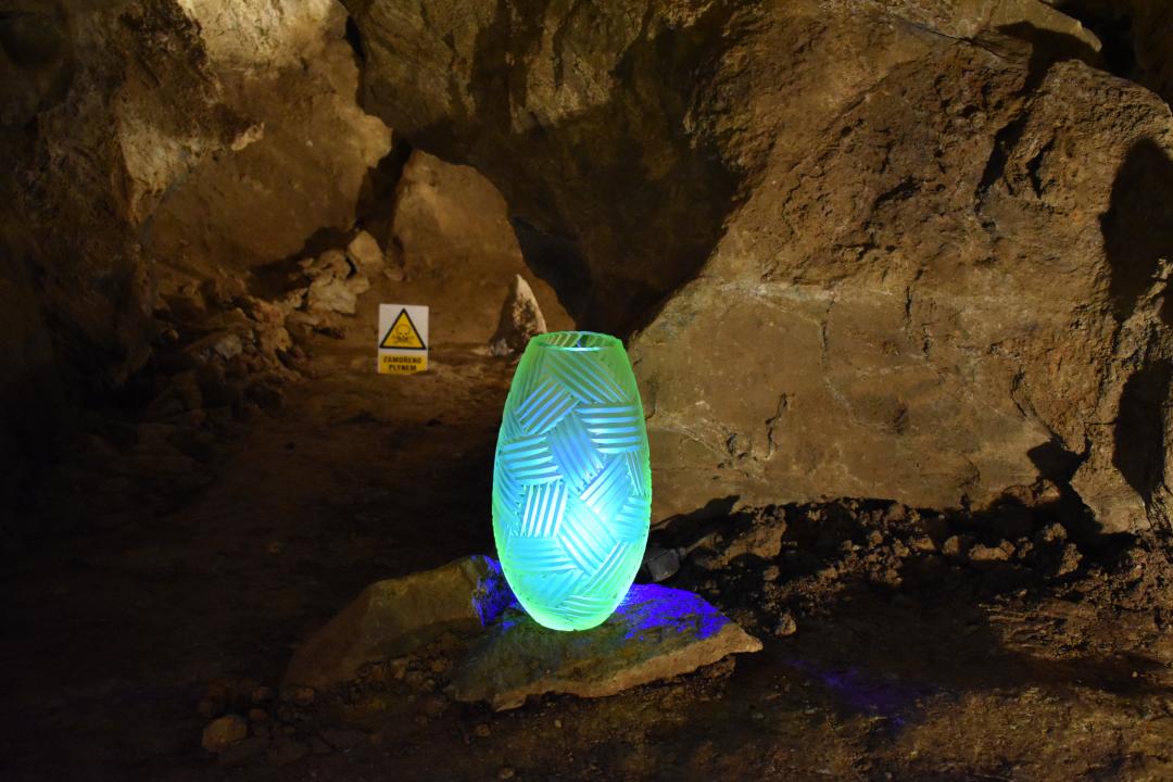 Zbrašovské aragonitové jeskynní chodby hostily od konce června až do konce října 2022 výstavu DNA, Crystal Creative. Krasové podzemí oživili tři zástupci nejmladší generace sklářských výtvarníků: Filip Dobias, David Gábera a Jakub Petr. Jejich instalace využívá ultrafialové osvětlení, které umocňuje barevně-světelné efekty skla v temných zákoutích jeskyní. Vraťme se několika snímky k její vernisáži 28. června 2022, na které zahrál violoncellista Dalibor Pimek.